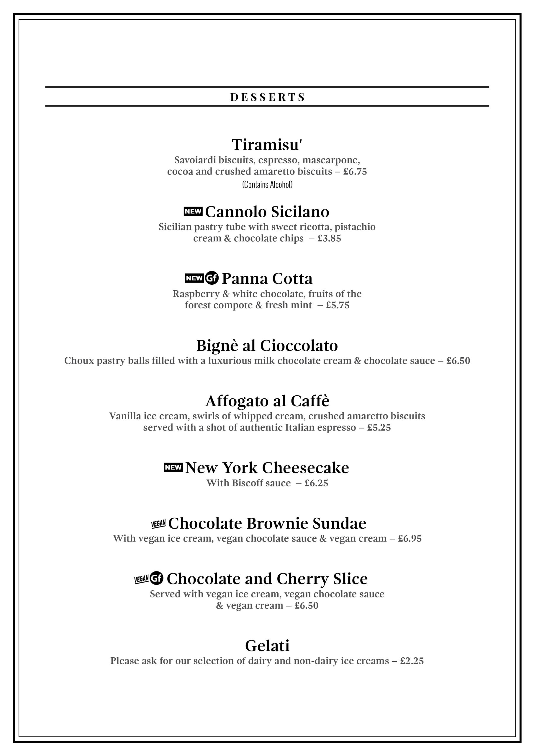 Treat yourself to comething sweet from our specially selected dessert menu.